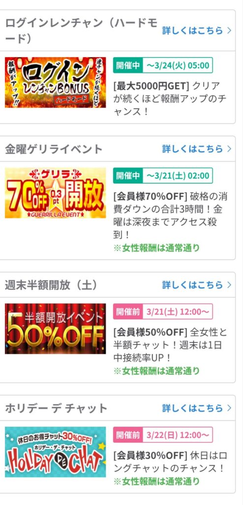 チャットレディサイトでは、収入UPができるイベントが常に開催されています。